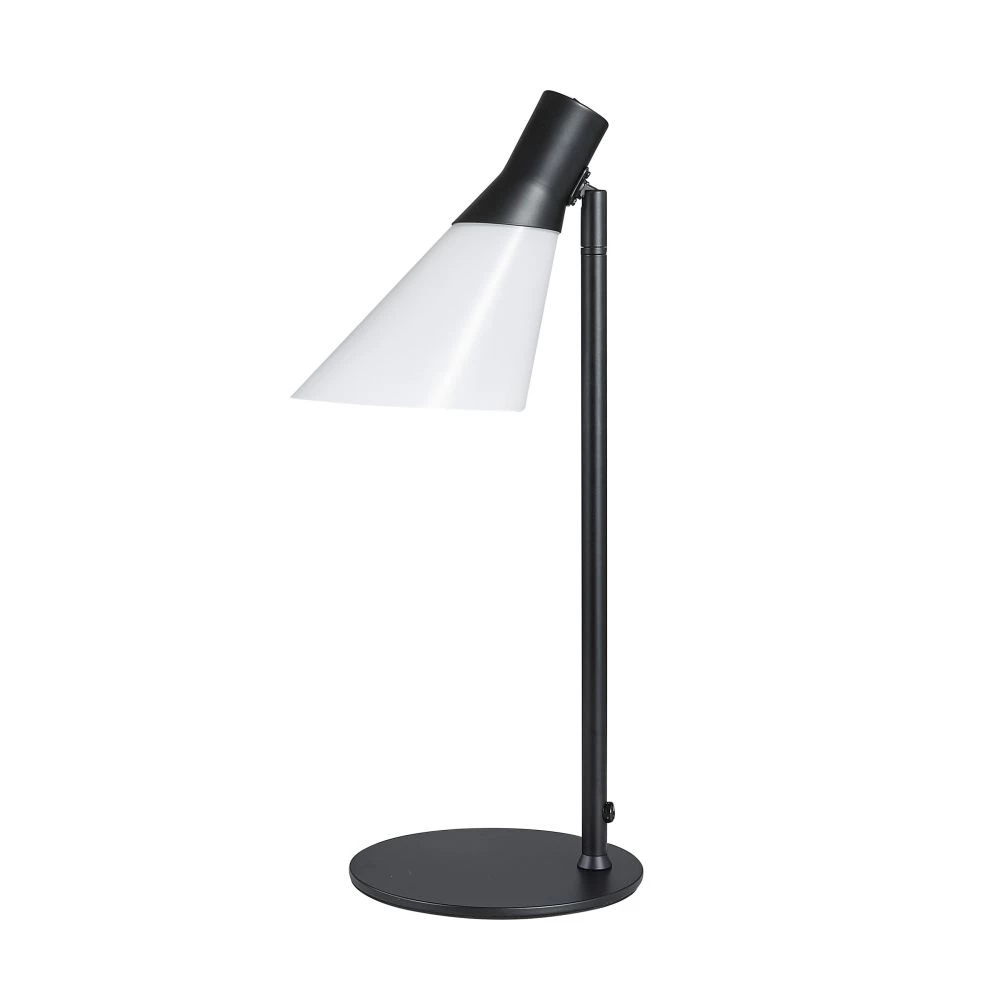 Gent er en serien hvor Opal glas bliver kombineret med sort metal. Bordlampens hoved kan tippes og drejes. Lampen leveres med stofledning. Afbryder sidder på skærmen.