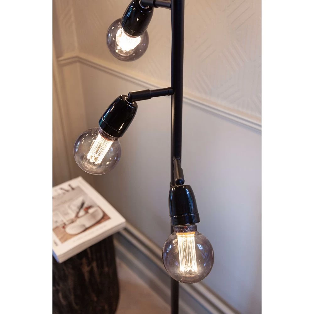 Gulvlampen er med 5 styk E27 fatninger, der hver og en er monteret med kip-led, så den kan vinkles i præcis cen retning man måtte ønske sig, og tillige giver frit spil med hvilken lyskilde man ønkser, om det skal være lige fra spot til til standart eller en helt trejde med dekorativ belysning