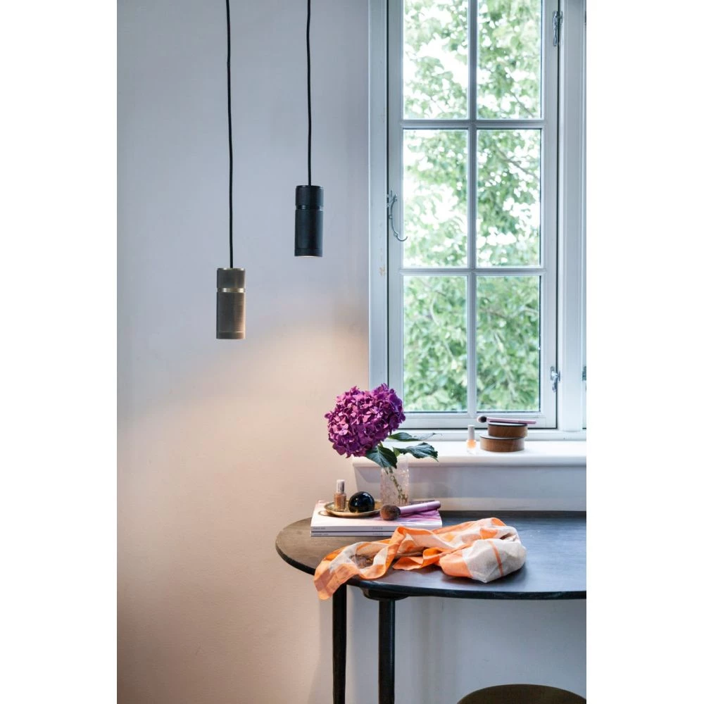 Halo The pendant leveres med 2,5 meter siliconekabel og fås i 3 farver; Sort og Gunblack og antik messing.