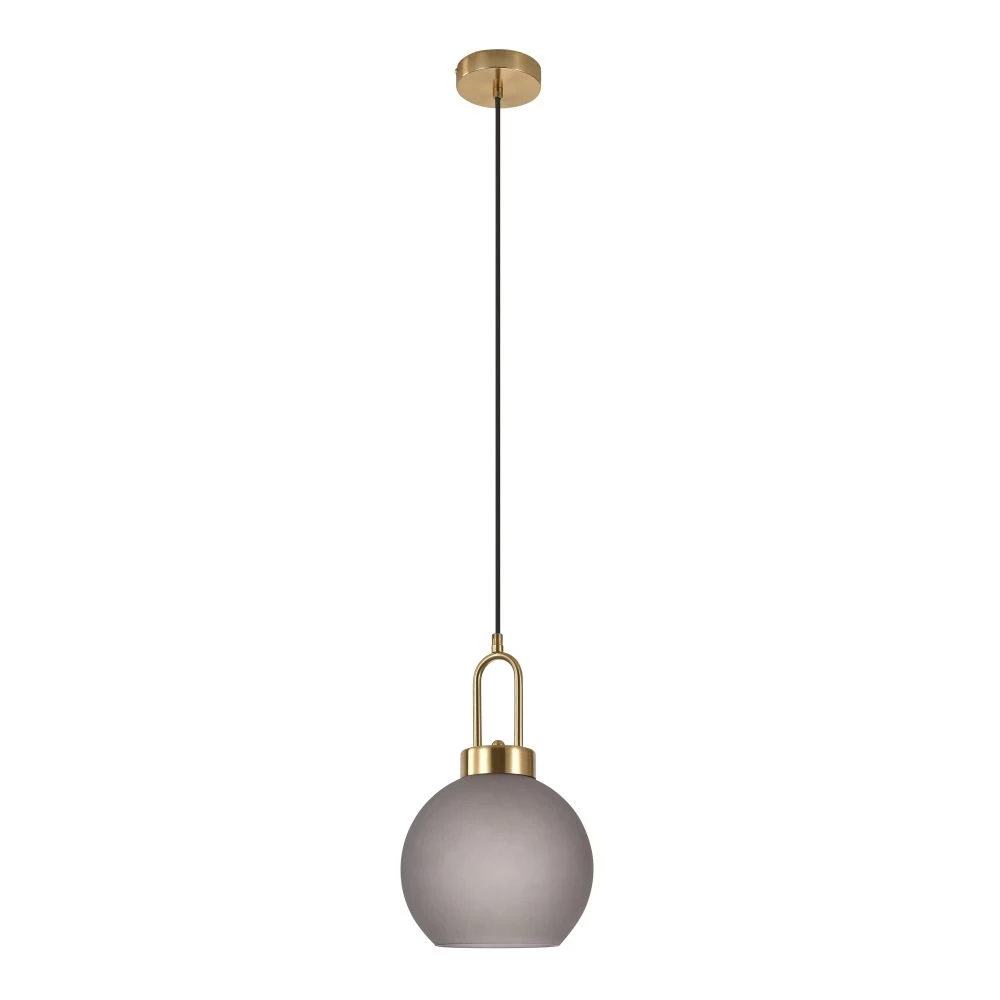 Pendel i kugleformet mat smokey glas og messingfatning