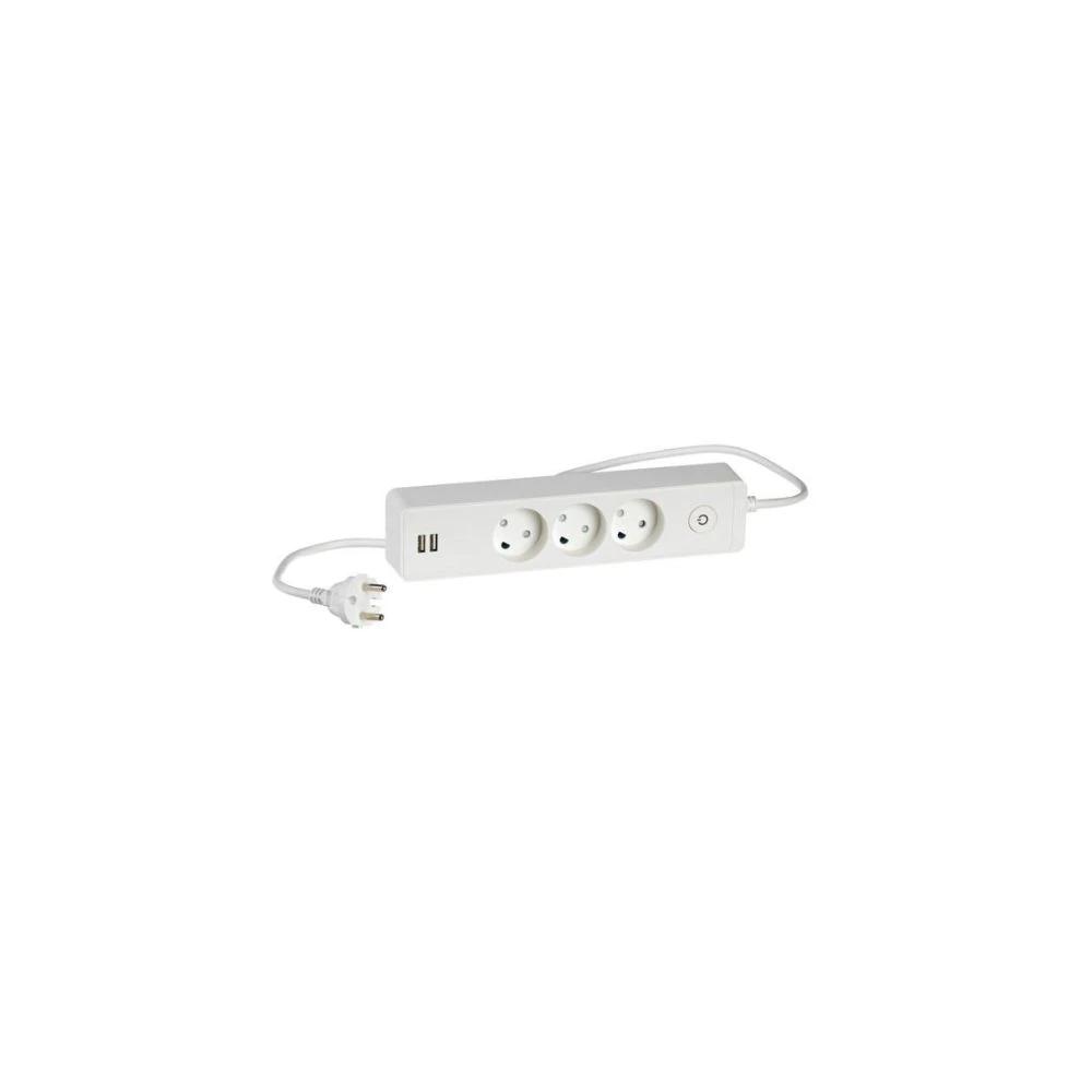 LK Designstikdåse 3 Vejs M/ Afbryder & 2 Usb 1,5m Hvid – 210A65151L