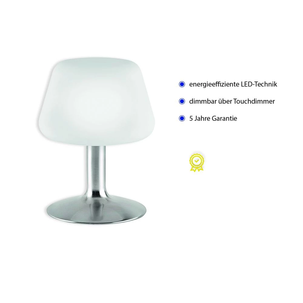 Lampen kan let justeres til tre niveauer ved hjælp af berøringsdæmperen Lampen leveres med en udskiftelig 3,0 watt LED-lyskilde