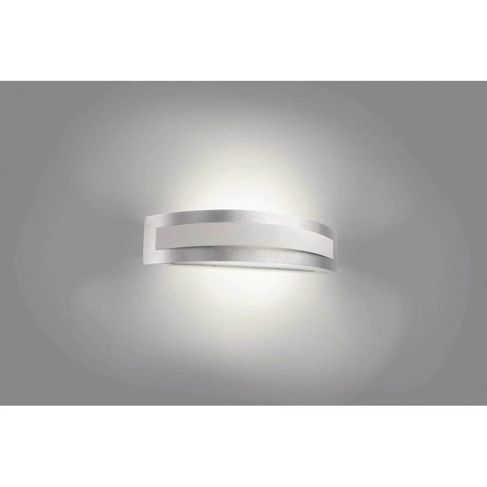 Med sine rene og elegante linjer består Philips Foulard væglampen af et buet, hvidt panel i skarp finish til en stålfod. Med en varm glød, der kastes op og ned ad væggen, giver den en udjævnet lyseffekt i ethvert rum.