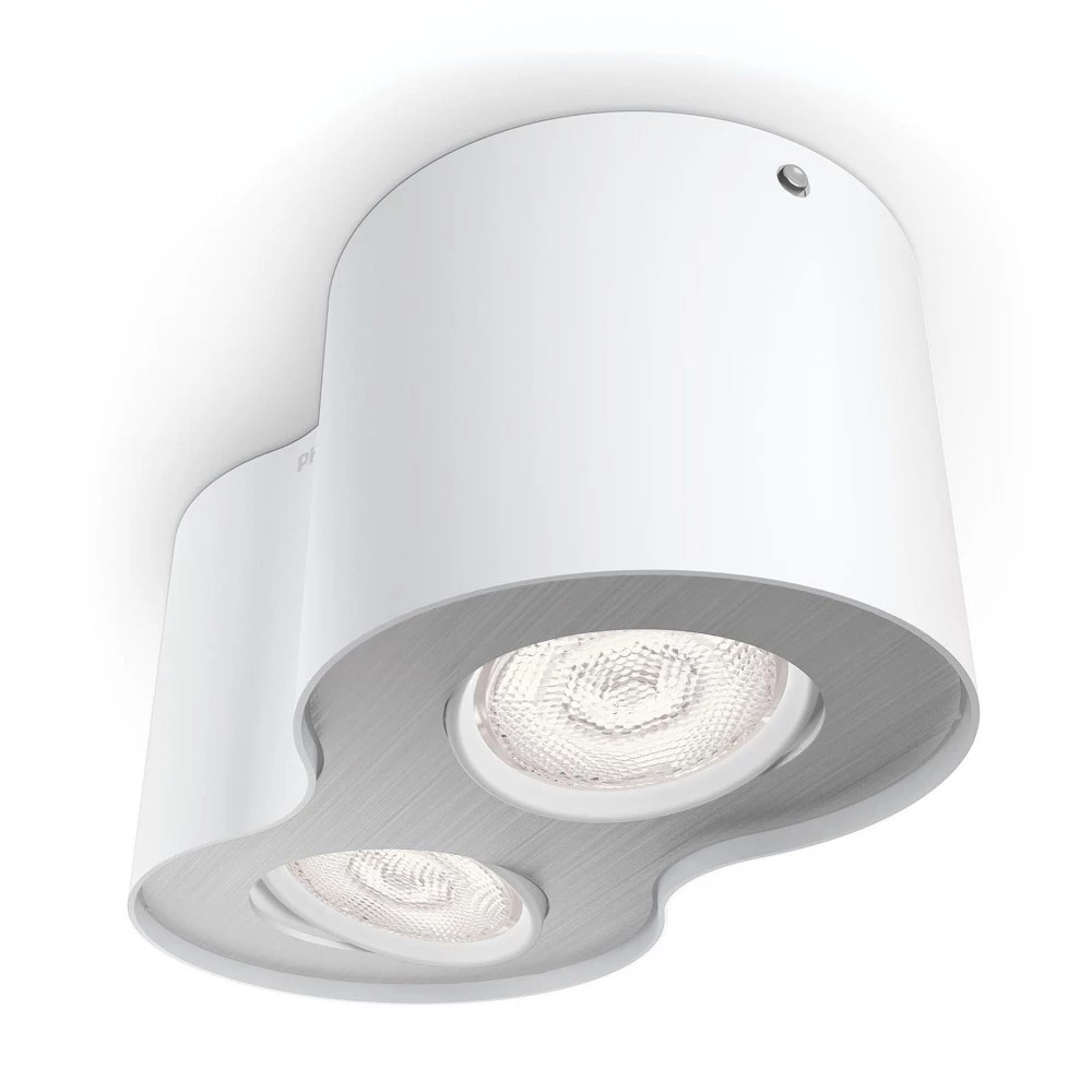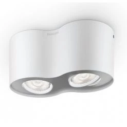 Den cylindriske Philips myLiving Phase-dobbeltspot i hvid har individuelt retningsjusterbare pærer og kan bruges med alle lysdæmpere. Dens LED’er forbruger blot nogle få watt og skaber et varmt hvidt lys, der er klart og smukt som halogen.