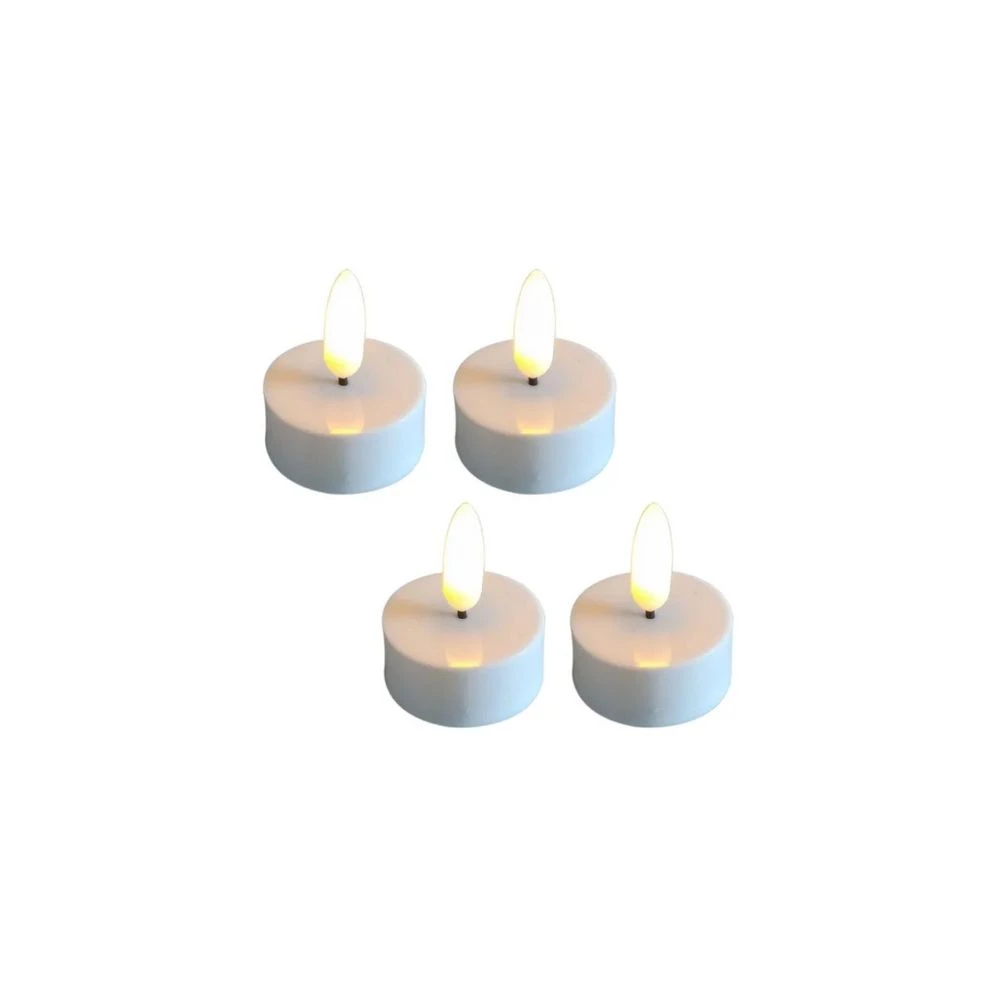3D Flamme Fyrfads lys. Sæt med 4 Led fyrfadslys. Med 3D flamme som levende lys. Måler: 4,6×3,8 cm.